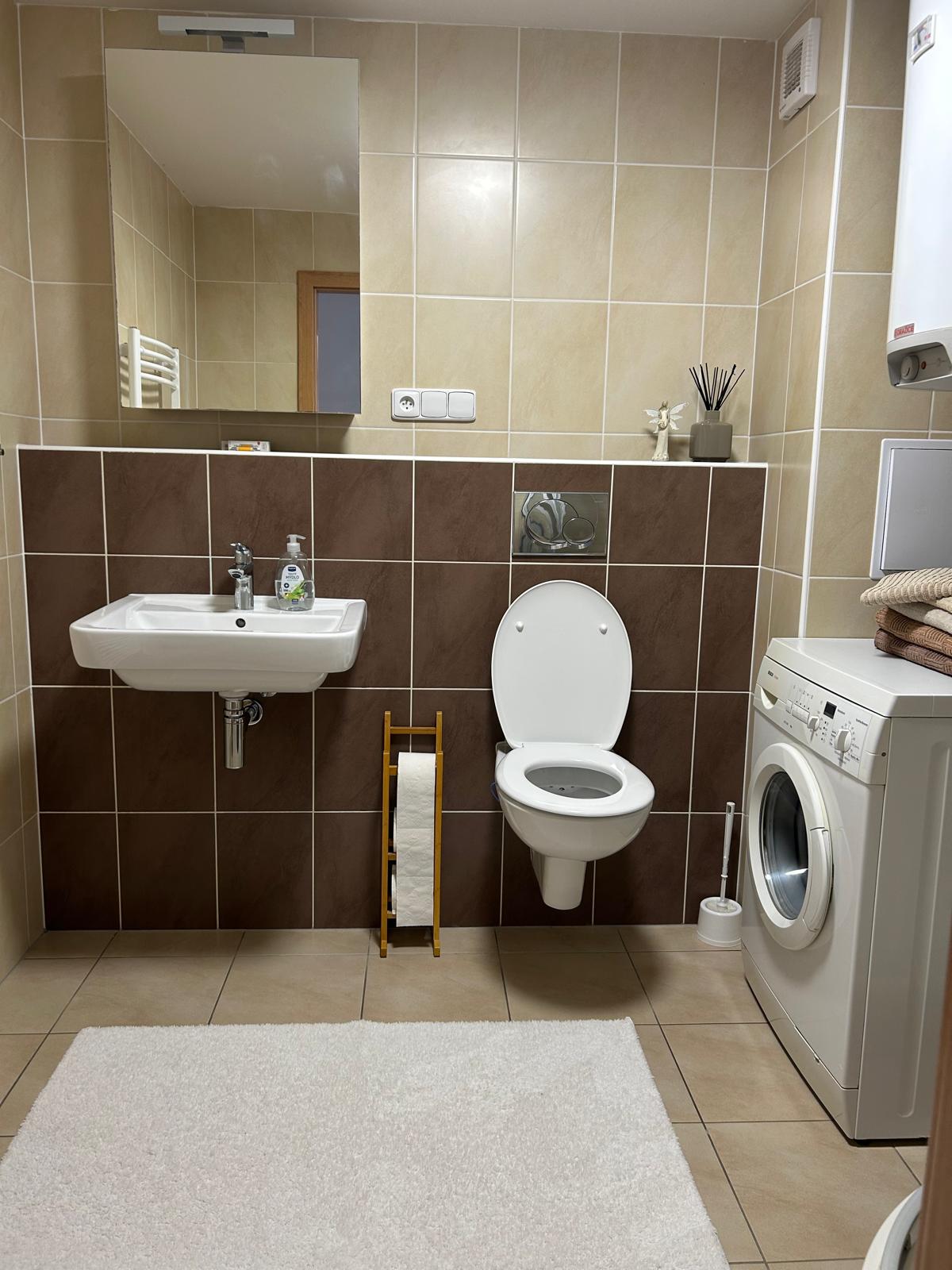 K dispozici vybavená kuchyňka vč. nádobí, myčka, mikrovlnka, pračka. V ceně!